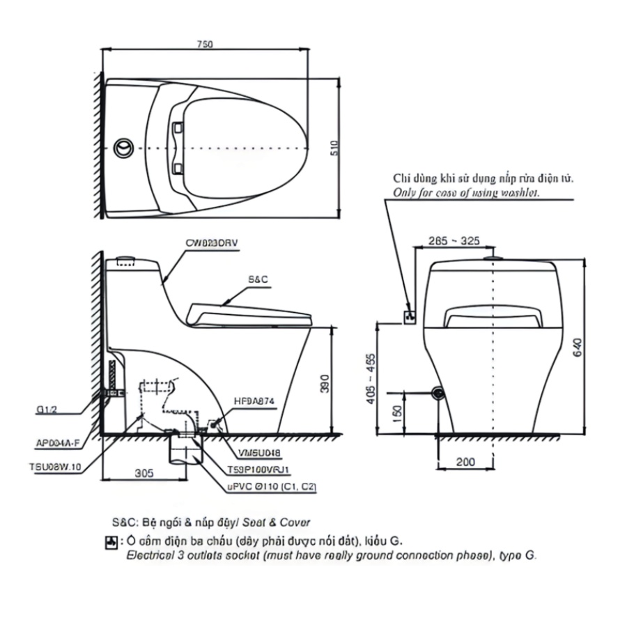 Bản vẽ bàn cầu C823DRW11 nắp TCF4911Z