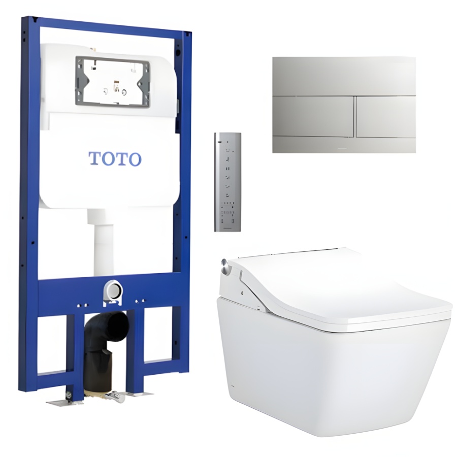 Bộ sản phẩm đồng bộ, tiện lợi: Bao gồm thân cầu CW522EA, nắp rửa điện tử TCF803CZ, két nước âm tường WH172AT và nắp đậy nút nhấn MB171M#SS, tạo thành một giải pháp hoàn chỉnh cho phòng tắm hiện đại.