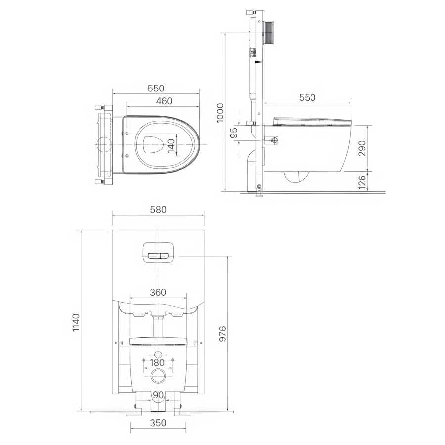 Bản vẽ kỹ thuật Bồn Cầu Treo Tường Inax AC-952 Kèm Nắp Rửa Điện Tử CW-H20VN