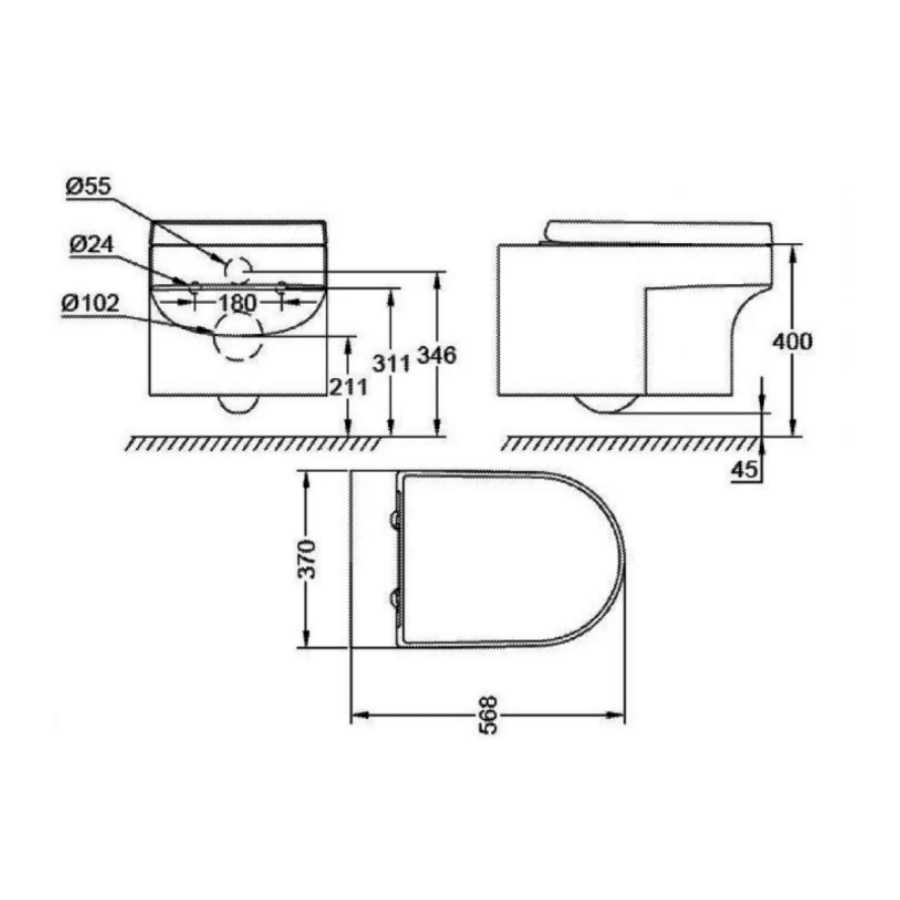 Kích thước tối ưu: Kích thước 568 x 370 x 400 mm giúp sản phẩm phù hợp với nhiều không gian phòng tắm khác nhau, tạo sự cân đối và hài hòa.