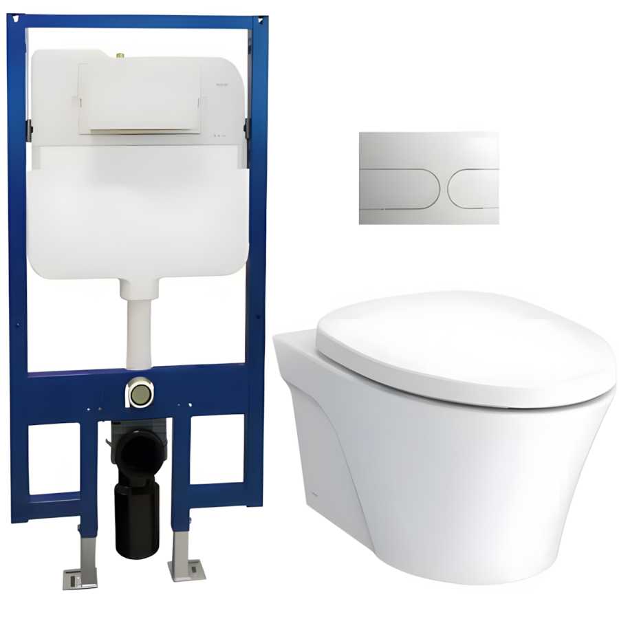 Bồn cầu TOTO CW822RA treo tường kèm nắp điện tử Washlet TCF23410AAA, két nước WH172A và nút nhấn MB175M#SS hiện đại, tiện nghi, tiết kiệm nước.