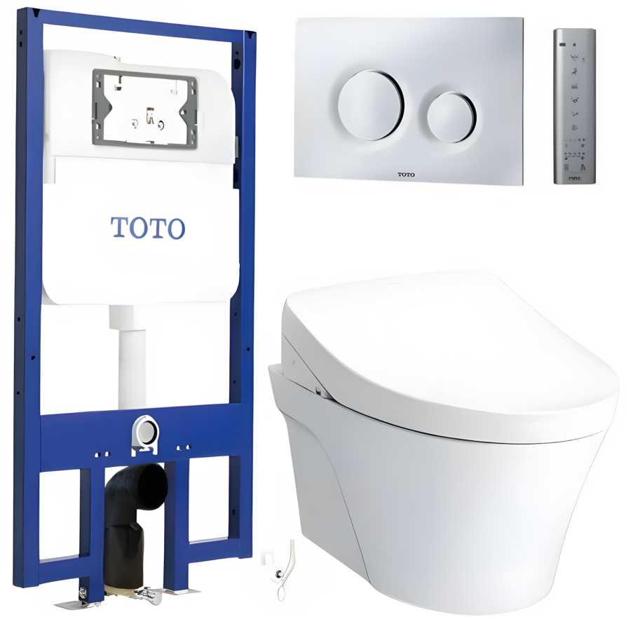 Bồn cầu TOTO CW822RA treo tường kèm nắp điện tử Washlet TCF23410AAA, két nước WH172A và nút nhấn MB175M#SS hiện đại, tiện nghi, tiết kiệm nước.