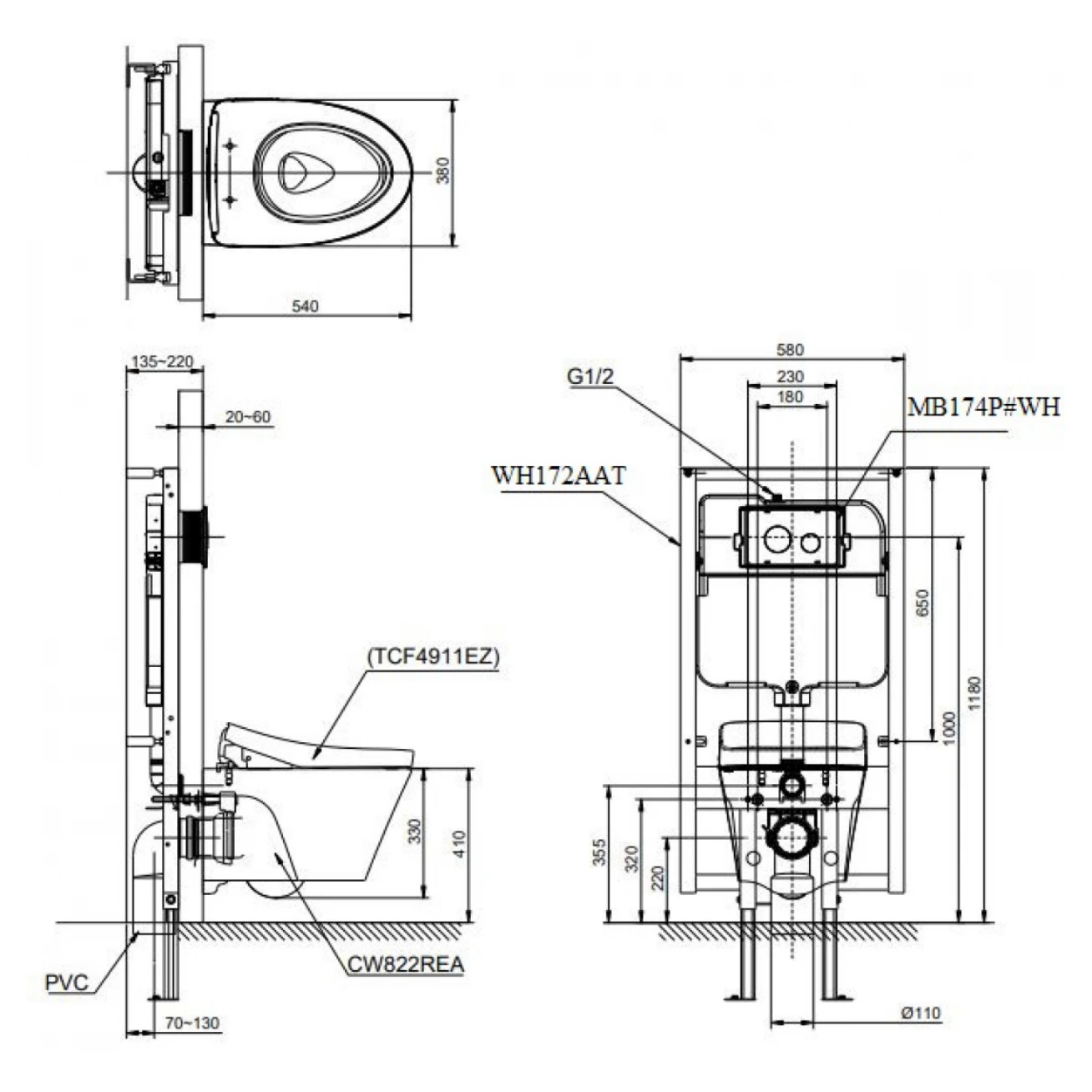 Bản vẽ Bồn Cầu Treo Tường TOTO CW822REA