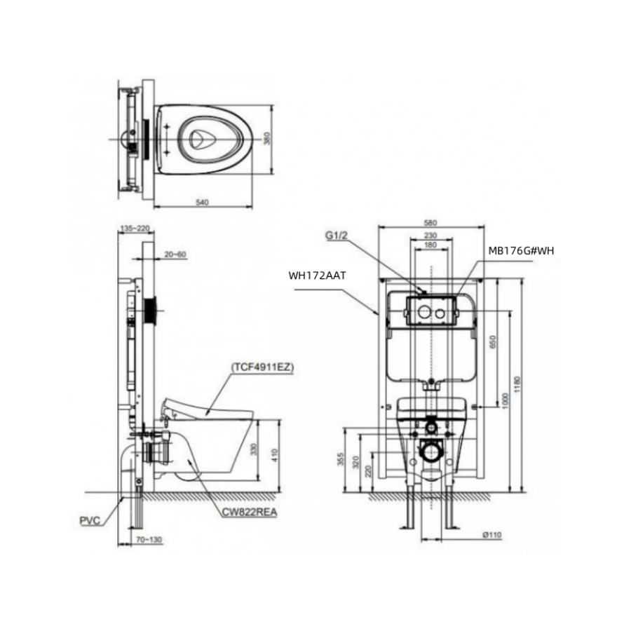 TOTO CW822REA/TCF4911EZ/WH172AAT/TCA464/MB176G#WH bao gồm: