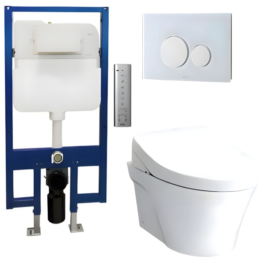 Bồn cầu treo tường TOTO CW822RA tích hợp nắp điện tử TCF4911Z, két nước âm WH172A, mặt nhấn MB175M#SS sang trọng, tối ưu hóa không gian sống.