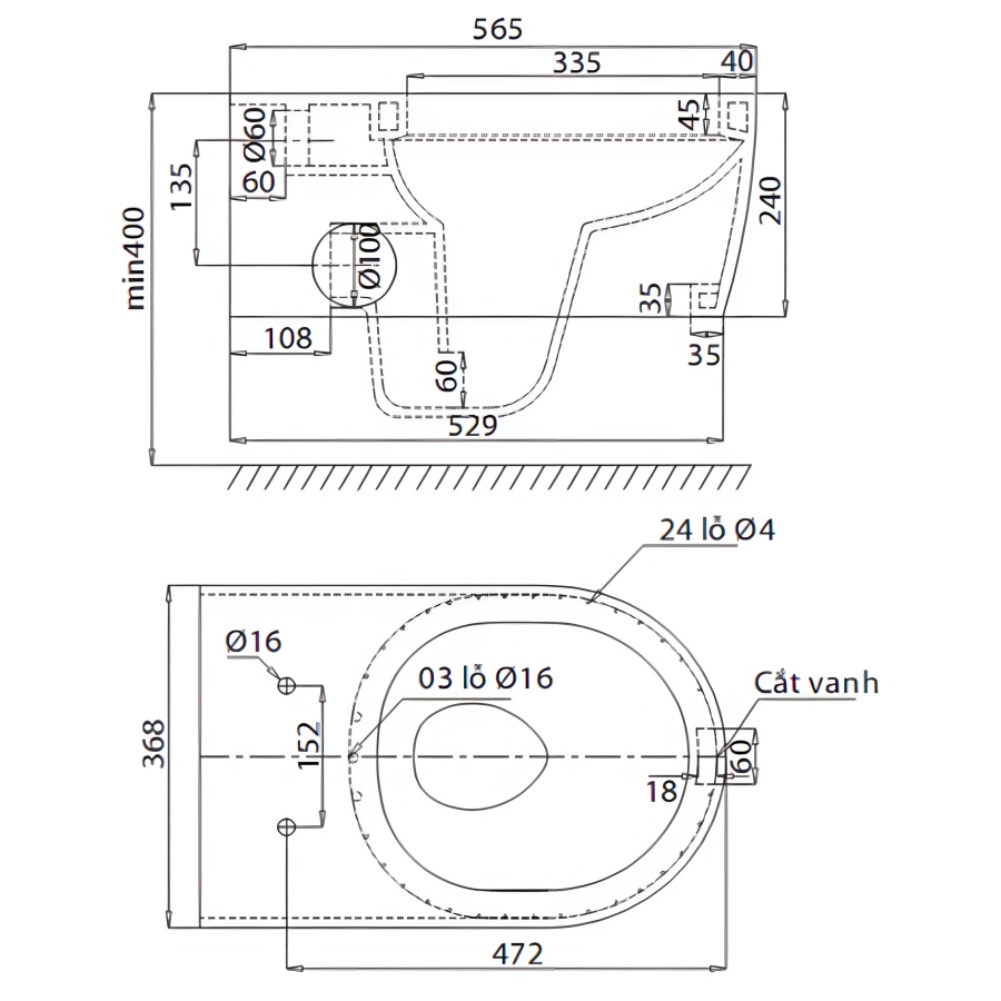 Bản vẽ Bồn Cầu Viglacera V55 Két Âm Tường