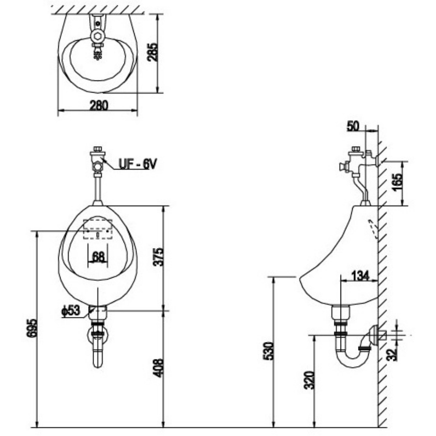 Bản vẽ Bồn Tiểu Nam Inax U-116V Treo Tường