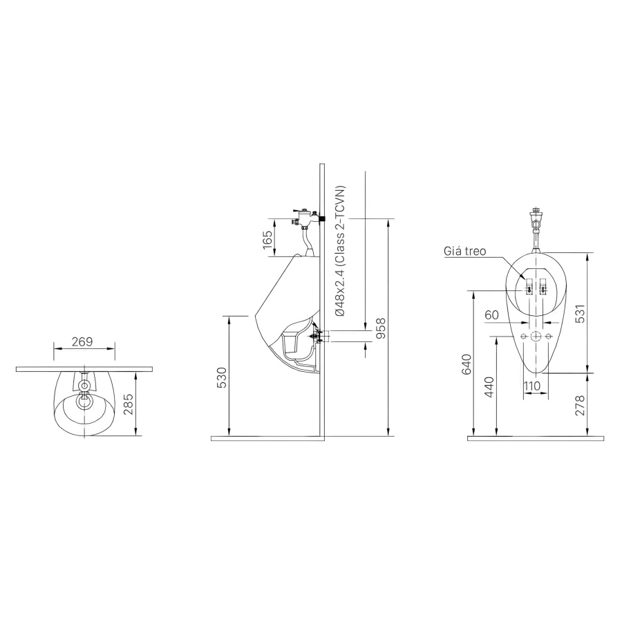 Bản vẽ Bồn Tiểu Nam Inax U-117V Treo Tường