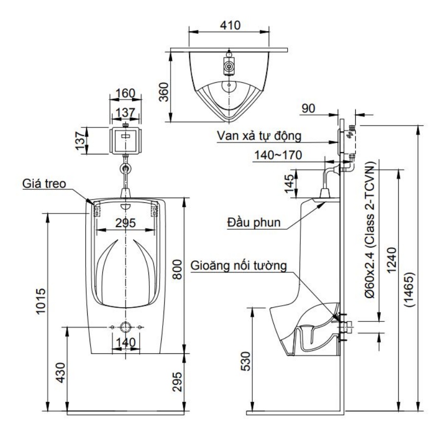 Bản vẽ Bồn Tiểu Nam Inax U-411V Treo Tường