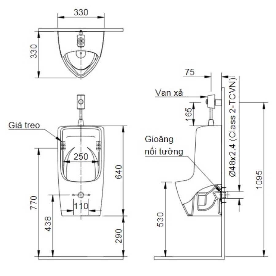 Loại: Bồn tiểu nam treo tường