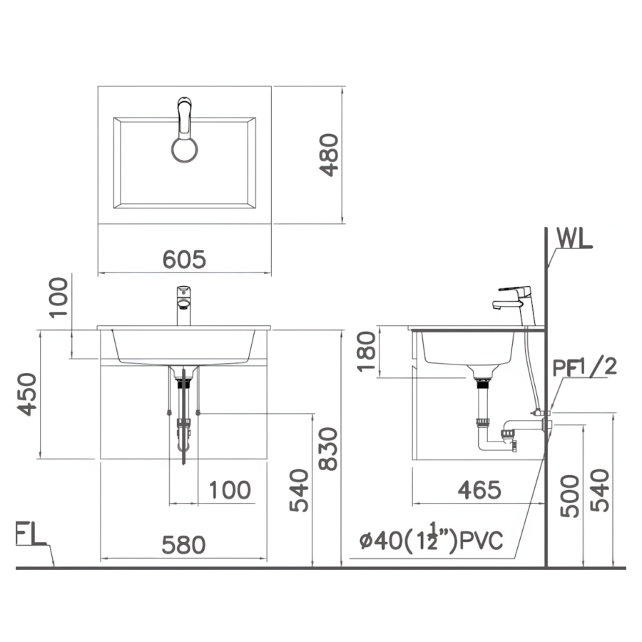Bản vẽ Chậu Rửa Lavabo Dương Bàn CAESAR LF5017