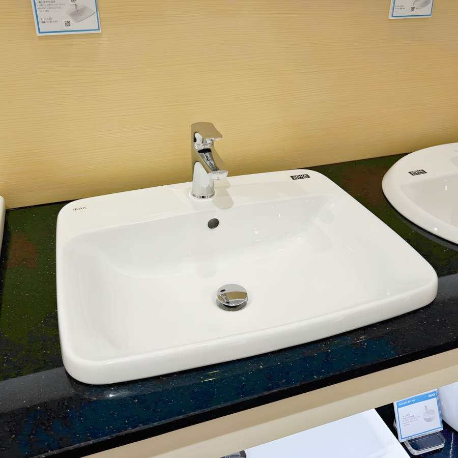 Công nghệ Aqua Ceramic: Đây là công nghệ men sứ độc quyền của INAX, giúp bề mặt chậu cực kỳ láng mịn, chống bám bẩn hiệu quả. Các vết bẩn, cặn nước và vi khuẩn khó có thể bám lại, giữ cho chậu luôn trắng sáng và sạch sẽ sau nhiều năm sử dụng.