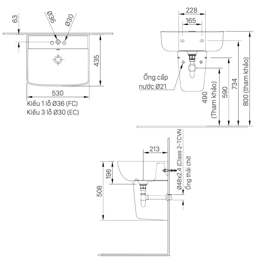 AL-312VEC: Kiểu 3 lỗ, phù hợp với các loại vòi 3 lỗ.