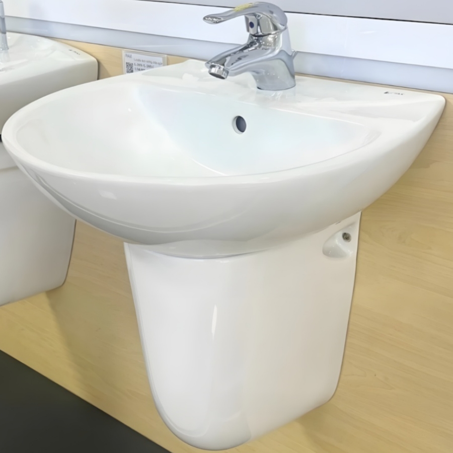 Chất liệu sứ cao cấp: Bồn rửa được làm từ sứ chất lượng cao, bề mặt được tráng men chống bám bẩn, dễ dàng lau chùi, giúp sản phẩm luôn sáng bóng như mới.