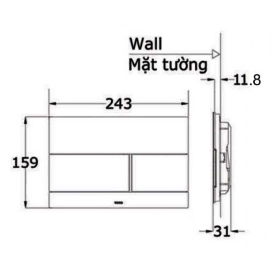 Tương thích cao: Nắp nhấn được thiết kế để kết hợp với các két nước âm tường TOTO phổ biến như WH172A, WH172AT, WH172AAT.