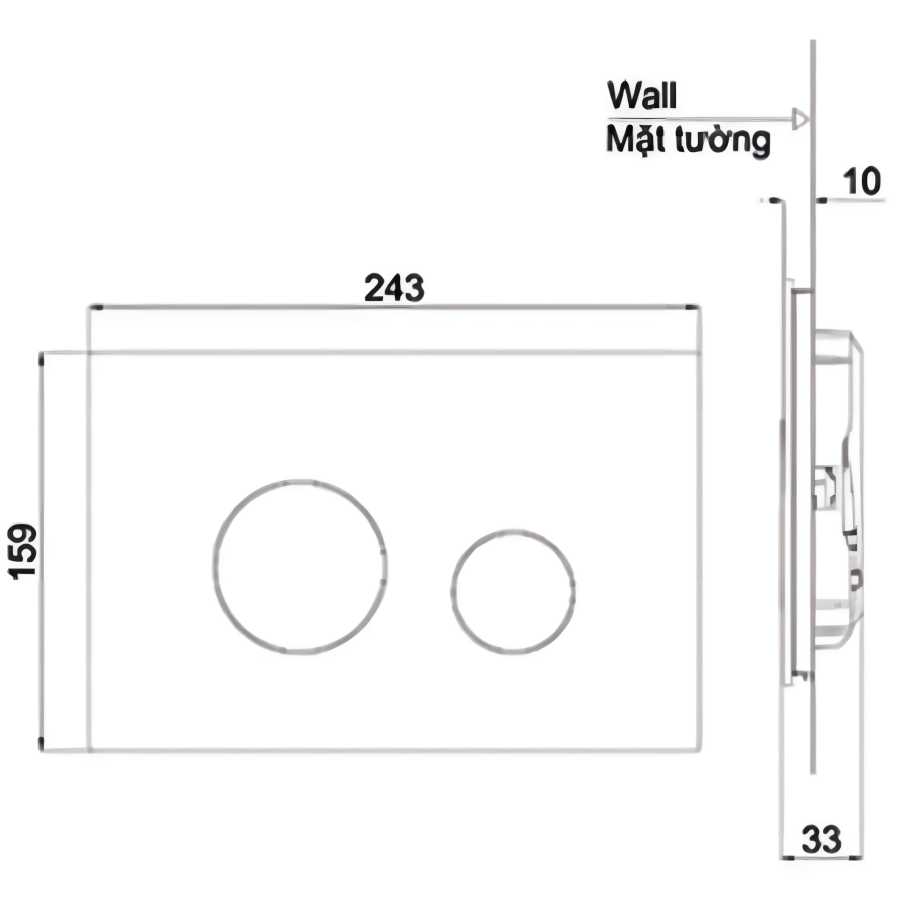Bản vẽ kích thước nút nhấn MB174#SS gắn bồn cầu treo tường TOTO