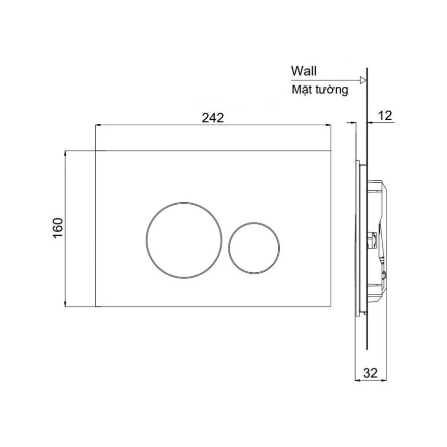 Bản vẽ nút nhấn MB 176G WH gắn bồn cầu treo tường TOTO