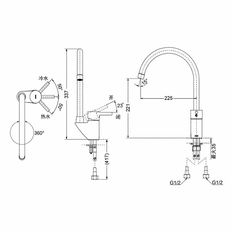 Thiết kế Gật gù & Xoay linh hoạt: Vòi gật gù nóng lạnh, dễ dàng điều chỉnh nhiệt độ và lưu lượng. Vòi có thể xoay 180 độ, tăng tính linh hoạt và phạm vi sử dụng.