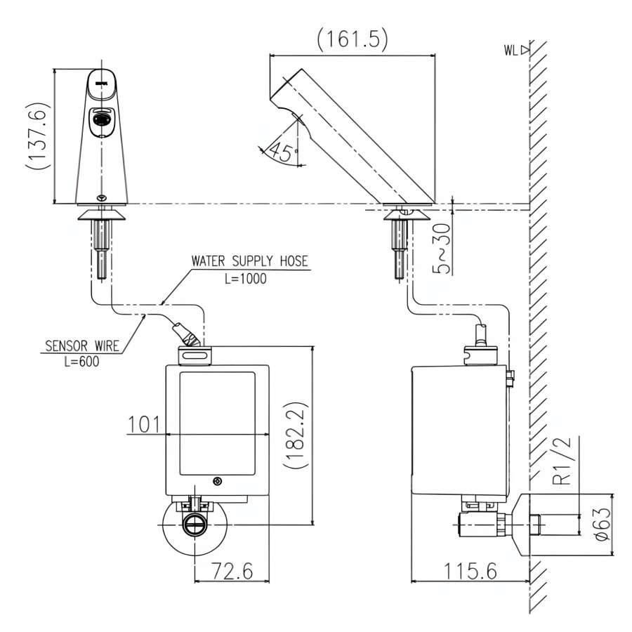 Bản vẽ Vòi Cảm Ứng Inax AMV-300 (AMV300) Nước Lạnh Dùng Pin