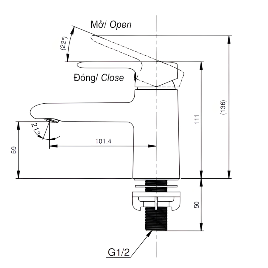 Chất liệu cao cấp, bền vững: Thân vòi được làm từ đồng thau cao cấp, đảm bảo độ bền và chống ăn mòn. Van đĩa bằng sứ giúp khóa nước hoàn toàn, chống bám cặn bẩn, kéo dài tuổi thọ sản phẩm.