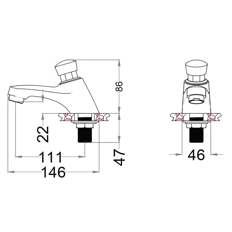 Bản vẽ Vòi Lạnh Lavabo CAESAR B053CU (BF053) Xả Nhấn Bán Tự Động