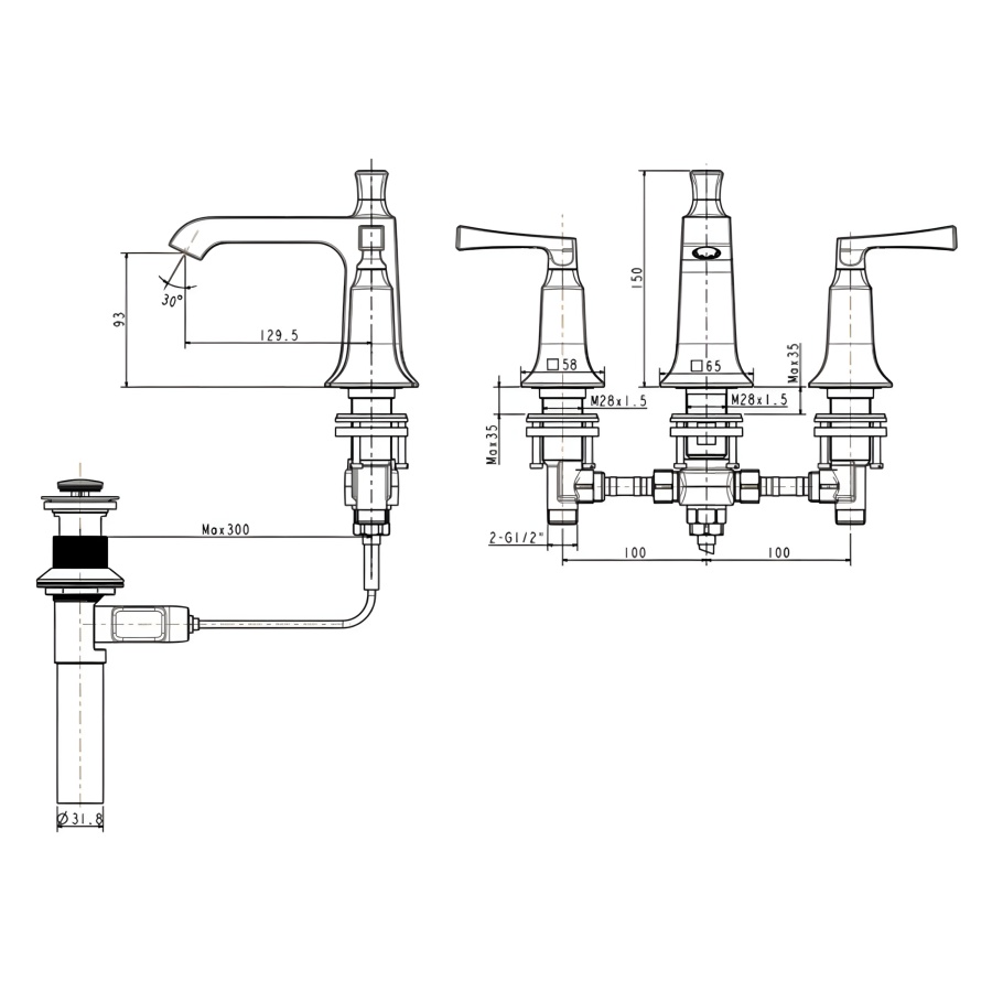 Bản vẽ Vòi Lavabo 3 Lỗ American Standard WF-1603 Kastello Nóng Lạnh