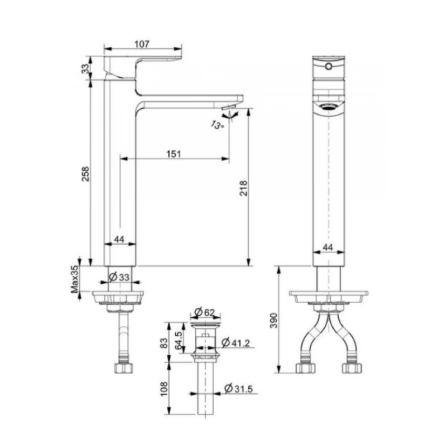 Áp lực nước ổn định: Vòi hoạt động hiệu quả trong dải áp lực nước rộng từ 0.05MPa đến 0.75MPa, đảm bảo dòng chảy ổn định và mạnh mẽ cho cả nước nóng và lạnh.