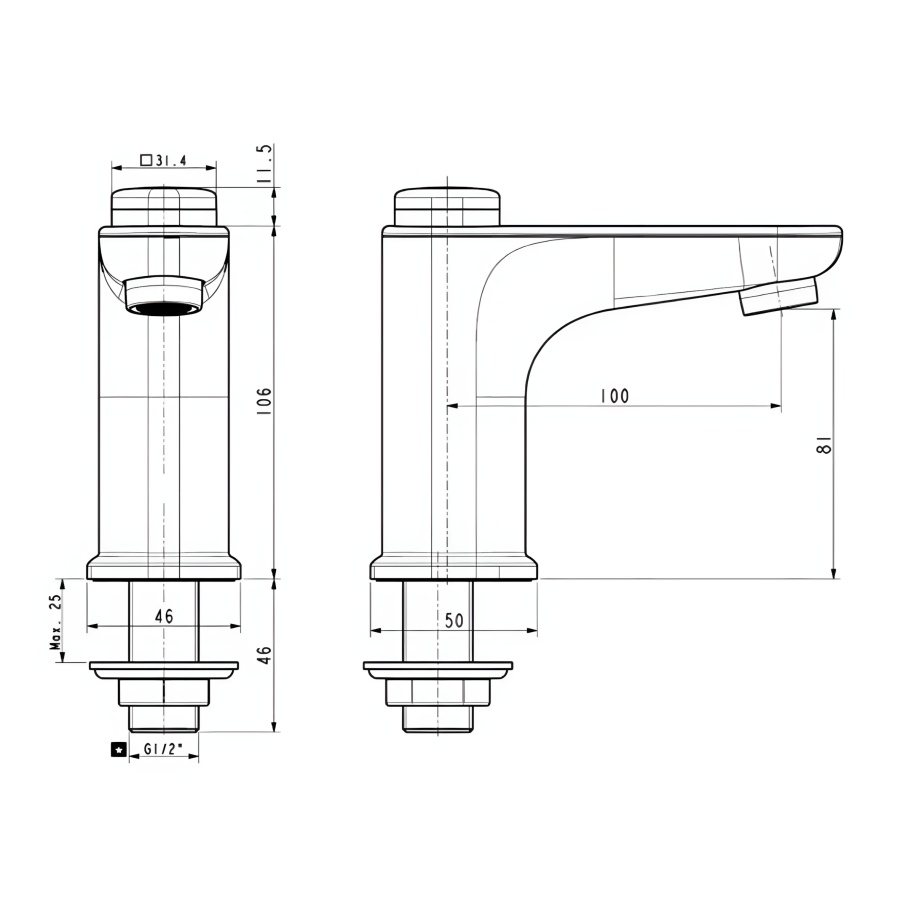 Bản vẽ Vòi Lavabo American Standard Gala WF-T823B (WFT823B) Nước Lạnh Màu Đen