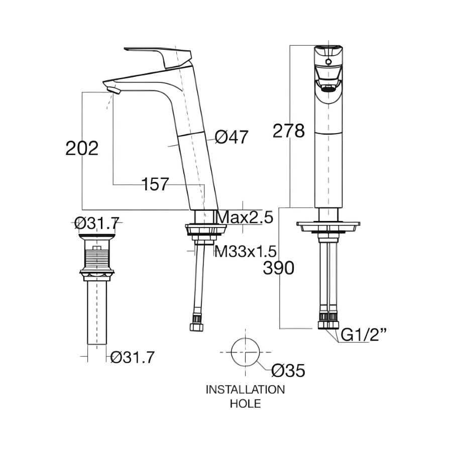 Bản vẽ Vòi Lavabo American Standard WF-0303 (WF0303) Nóng Lạnh