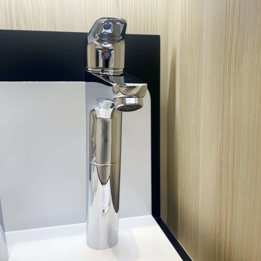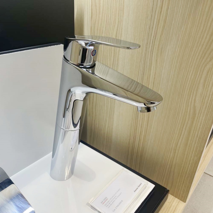 Thiết kế cổ cao hiện đại: Vòi lavabo American Standard WF-0303 có kiểu dáng gật gù cổ cao, phù hợp với nhiều loại chậu lavabo đặt trên bàn hoặc chậu âm và phong cách nội thất khác nhau.
