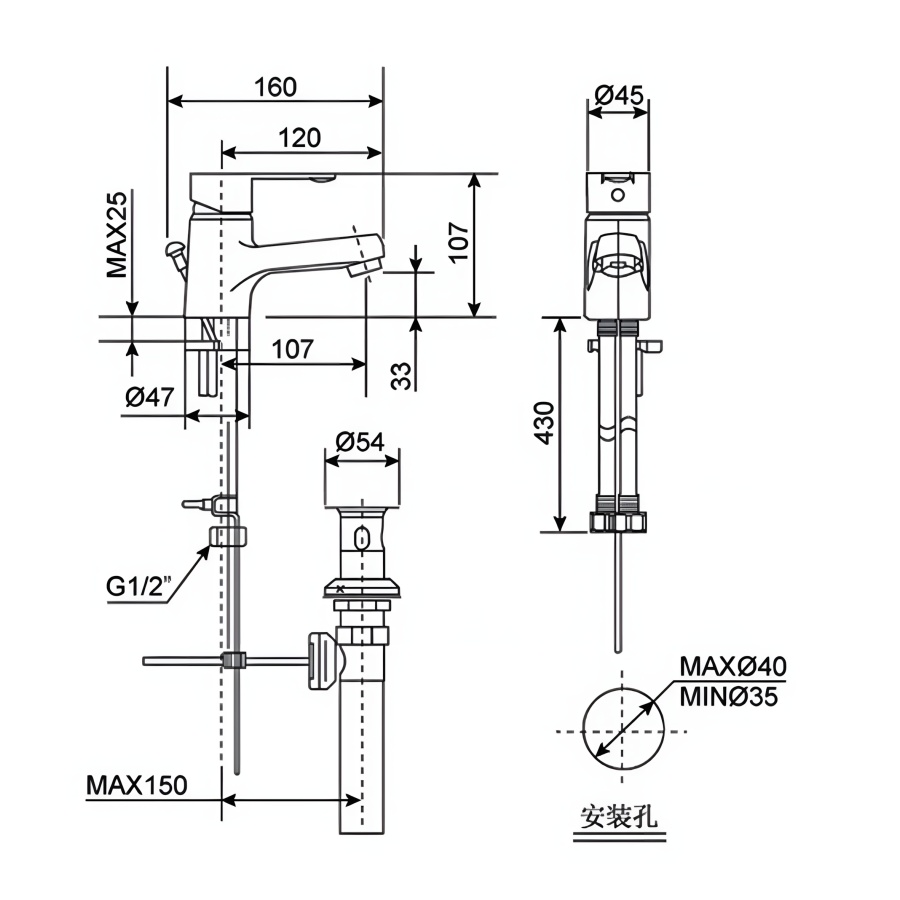 Áp lực nước ổn định: Vòi hoạt động hiệu quả với áp lực nước từ 0.05MPa đến 0.75MPa, đảm bảo dòng nước chảy ổn định và mạnh mẽ.