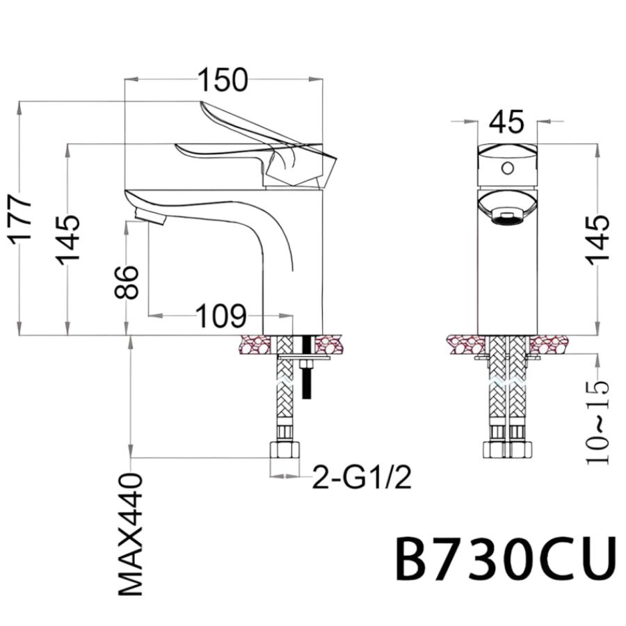 Bản vẽ Vòi Lavabo Caesar B730CU Nóng Lạnh