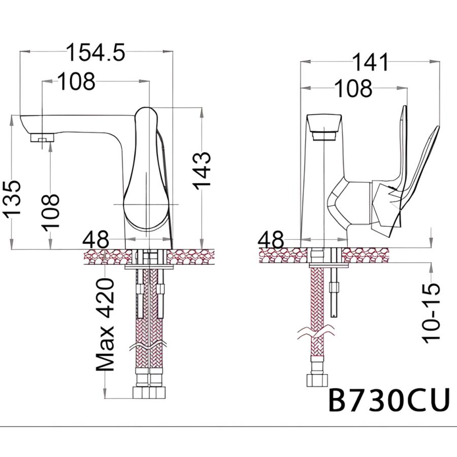 Bản vẽ Vòi Lavabo Caesar B740CU Nóng Lạnh