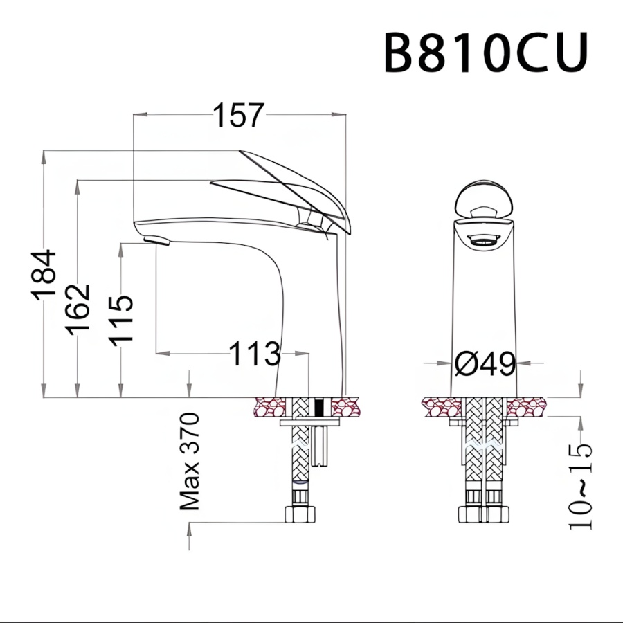 Bản vẽ Vòi Lavabo Caesar B810CU Nóng Lạnh