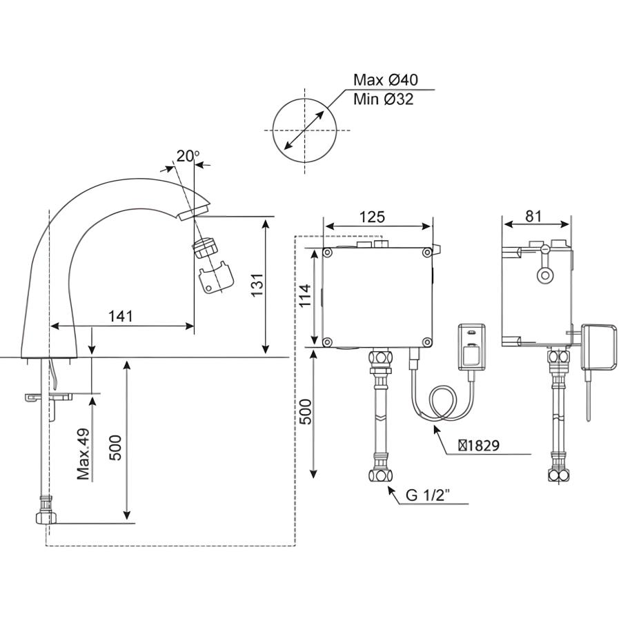 Bản vẽ Vòi Lavabo Cảm Ứng American Standard WF-8805 Dùng Pin