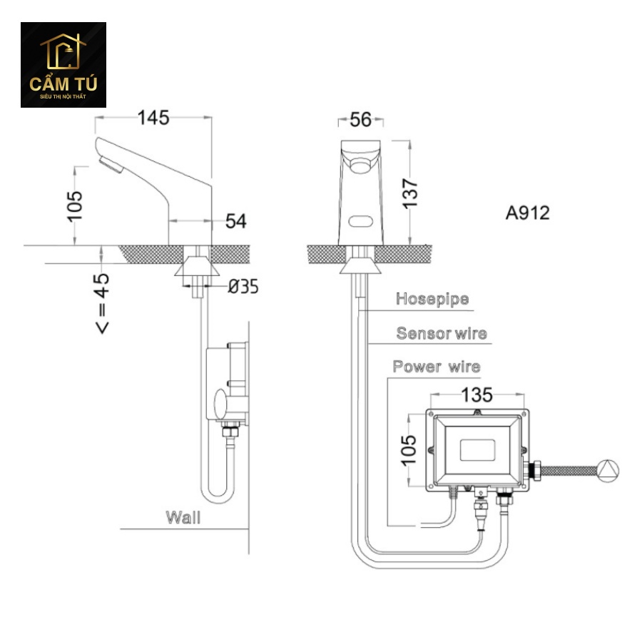 Liên hệ Siêu Thị Nội Thất Cẩm Tú ngay để sở hữu vòi lavabo cảm ứng CAESAR A912 lạnh với giá tốt nhất!