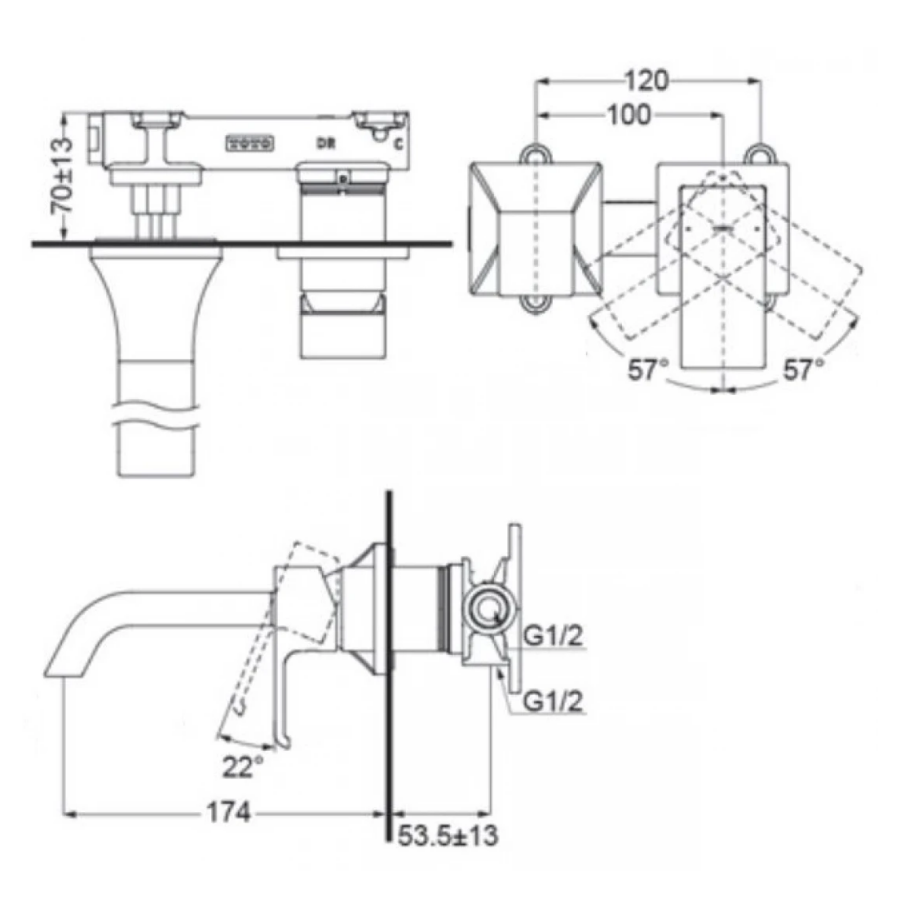 Kích thước tối ưu: Với độ vươn vòi từ tâm xả nước đến tường là 174 mm, vòi cung cấp không gian sử dụng vừa đủ, phù hợp với nhiều kích thước chậu lavabo khác nhau.