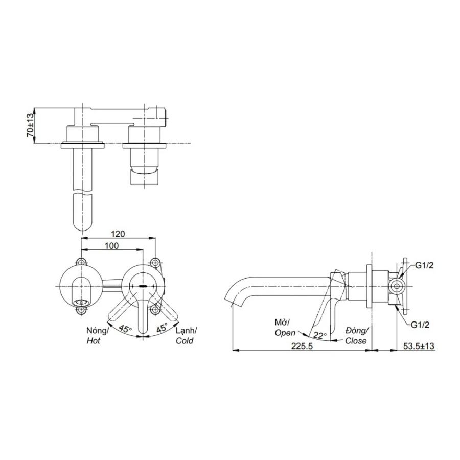 Kích thước tối ưu: Với độ vươn vòi từ tâm xả nước đến tường là 225.5 mm, vòi cung cấp không gian sử dụng thoải mái, phù hợp với nhiều kích thước chậu lavabo khác nhau.