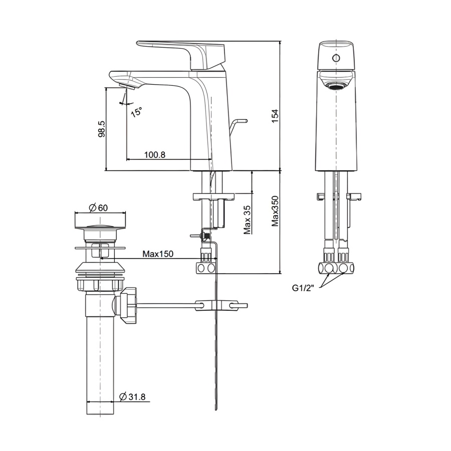 Loại vòi: Vòi lavabo nóng lạnh, dành cho chậu 1 lỗ
