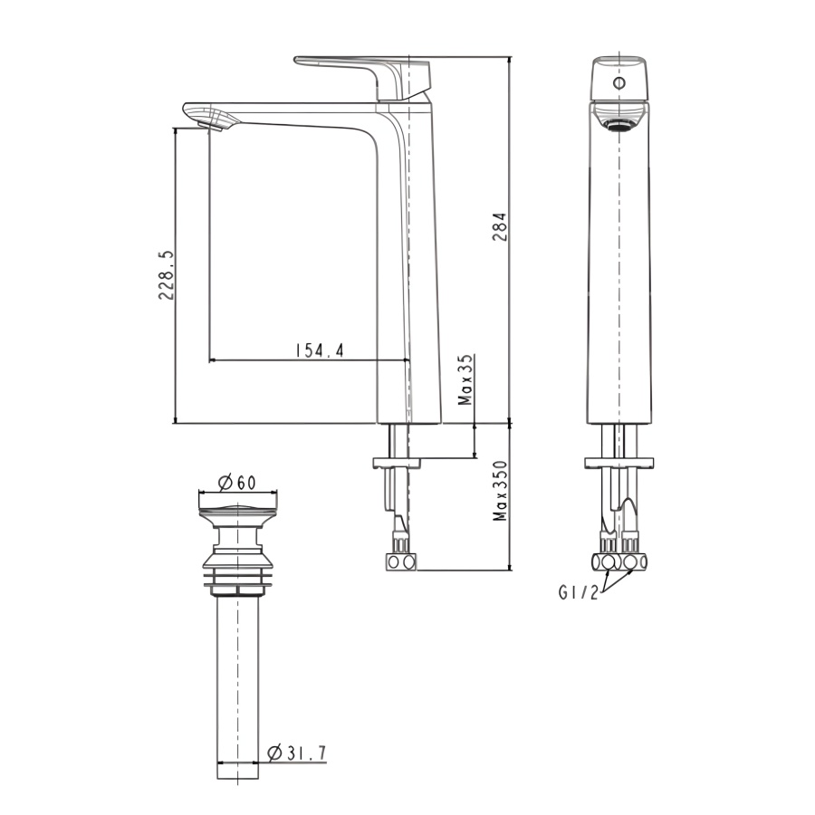 Loại vòi: Vòi lavabo nóng lạnh thân cao, dành cho chậu đặt bàn
