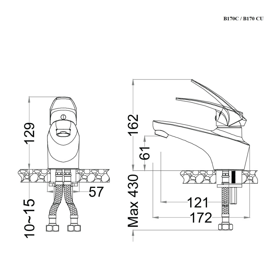 Bản vẽ Vòi Lavabo Nóng Lạnh CAESAR B170CU