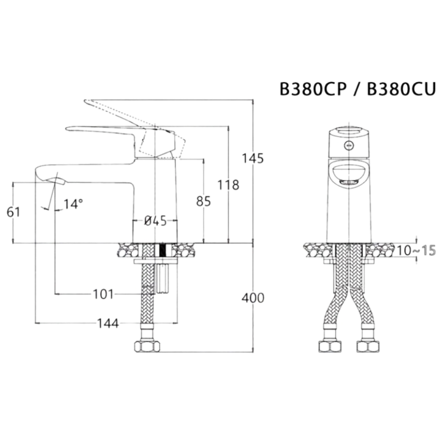 Bản vẽ Vòi Lavabo Nóng Lạnh CAESAR B380CU