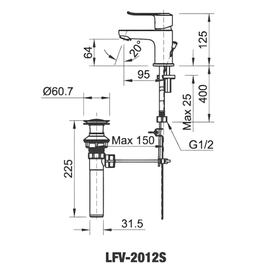 Bản vẽ Vòi Lavabo Nóng Lạnh Inax LFV-2012S Thân Thấp