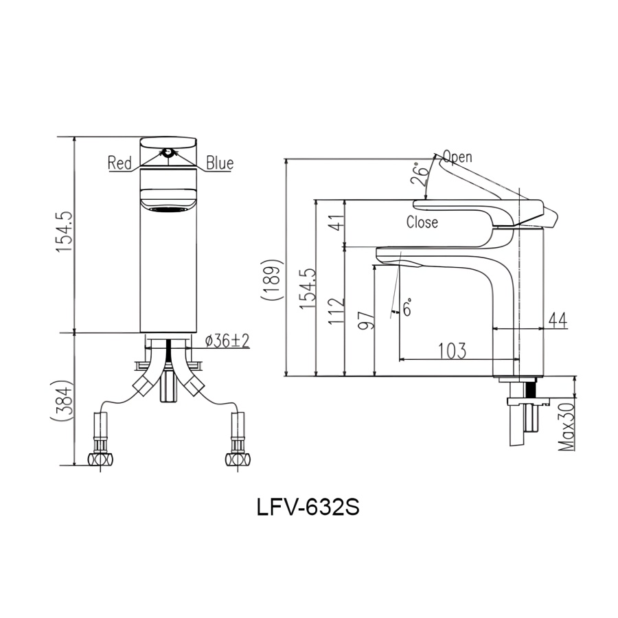 Bản vẽ Vòi Chậu Lavabo Inax LFV-632S (LFV632S) Nóng Lạnh
