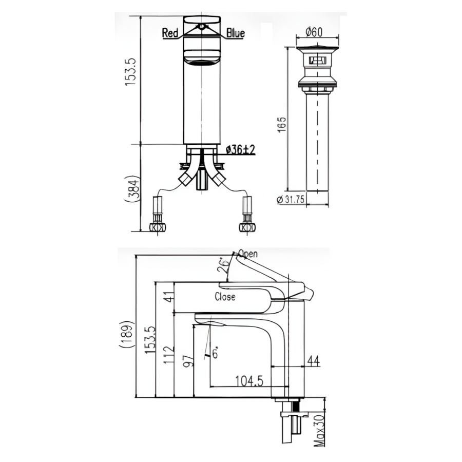 Loại vòi: Vòi lavabo nóng lạnh, dành cho chậu 1 lỗ
