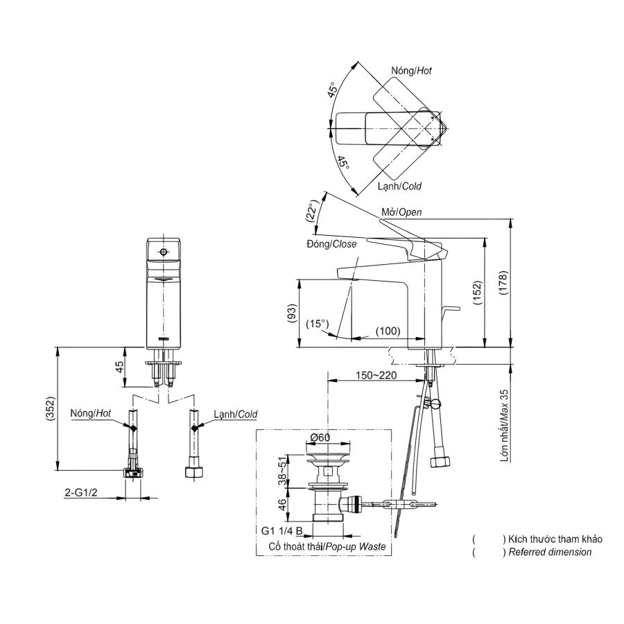 Bản vẽ kỹ thuật vòi chậu TOTO TVLM108 RU