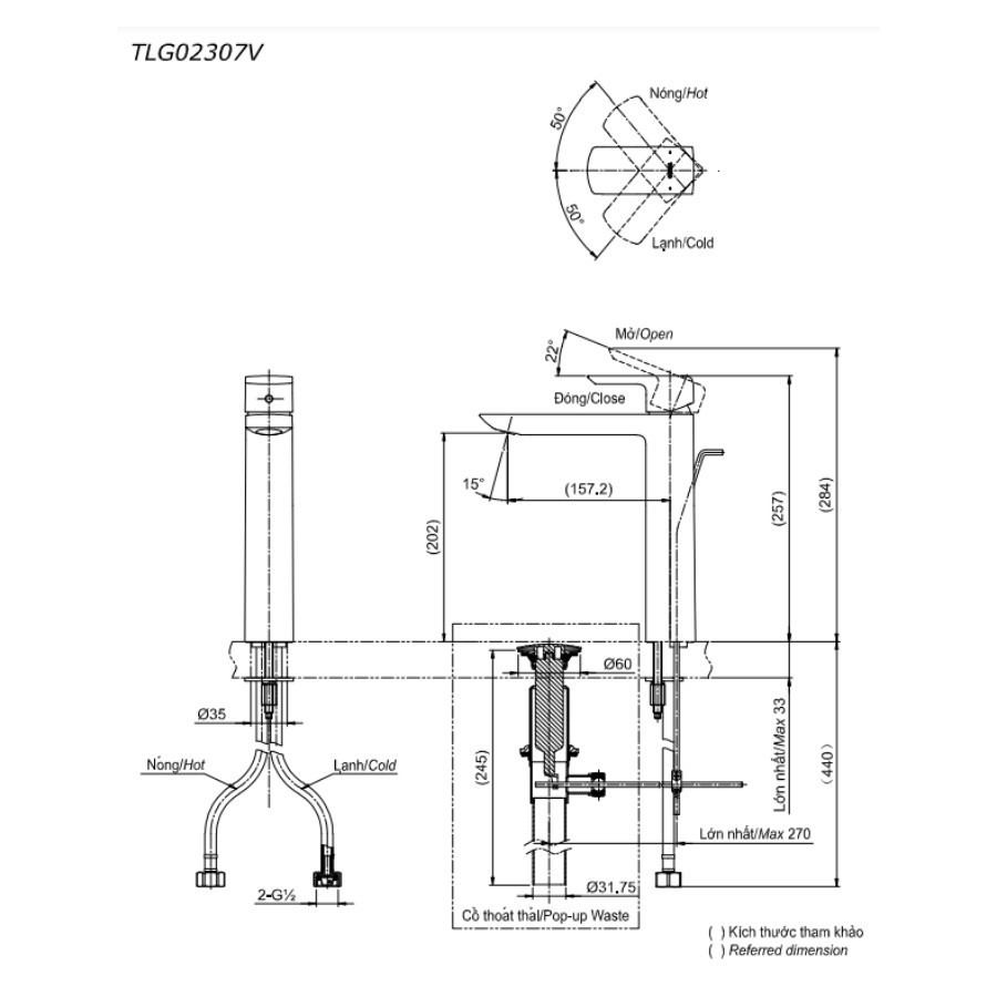 Áp lực nước: 0.05MPa ~ 0.75MPa