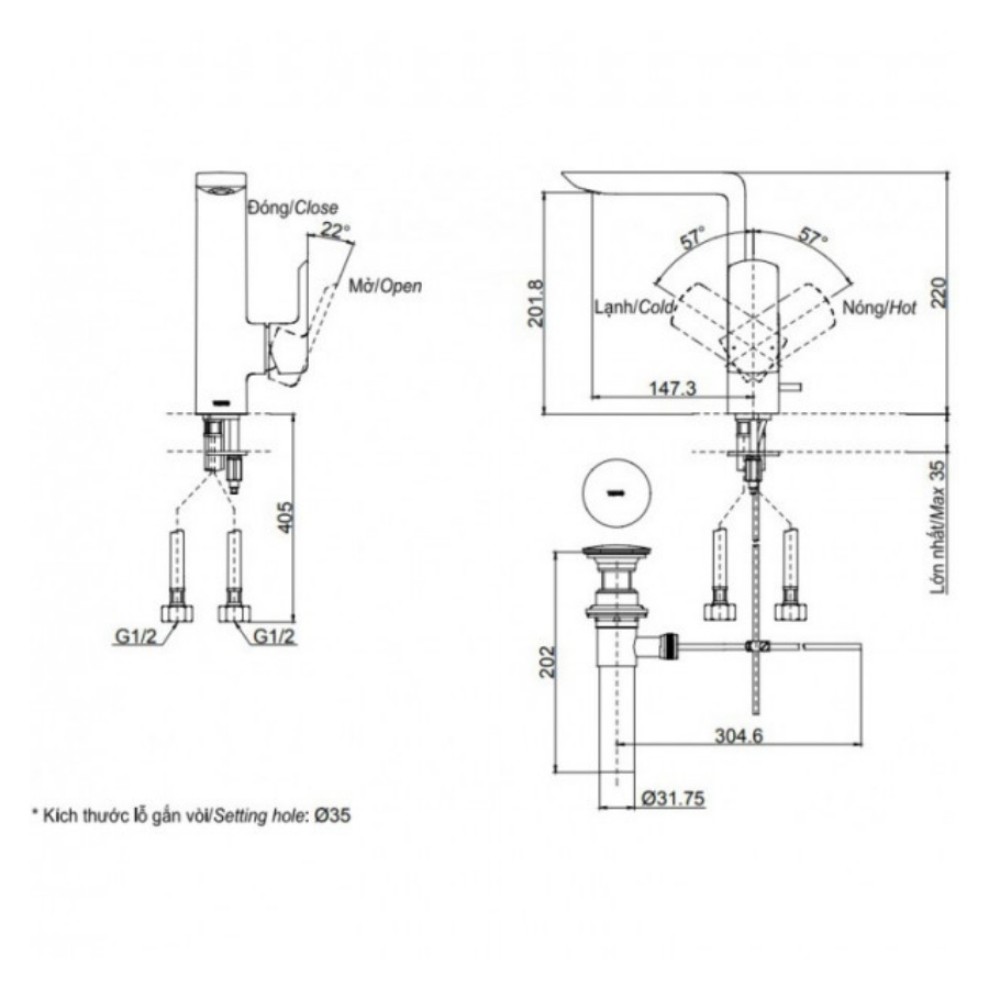 Áp lực nước: 0.05MPa ~ 0.75MPa