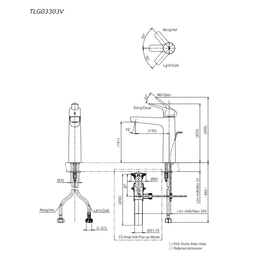 Lưu ý: Không gồm ống thải chữ P (có thể sử dụng ống thải TVLF401)