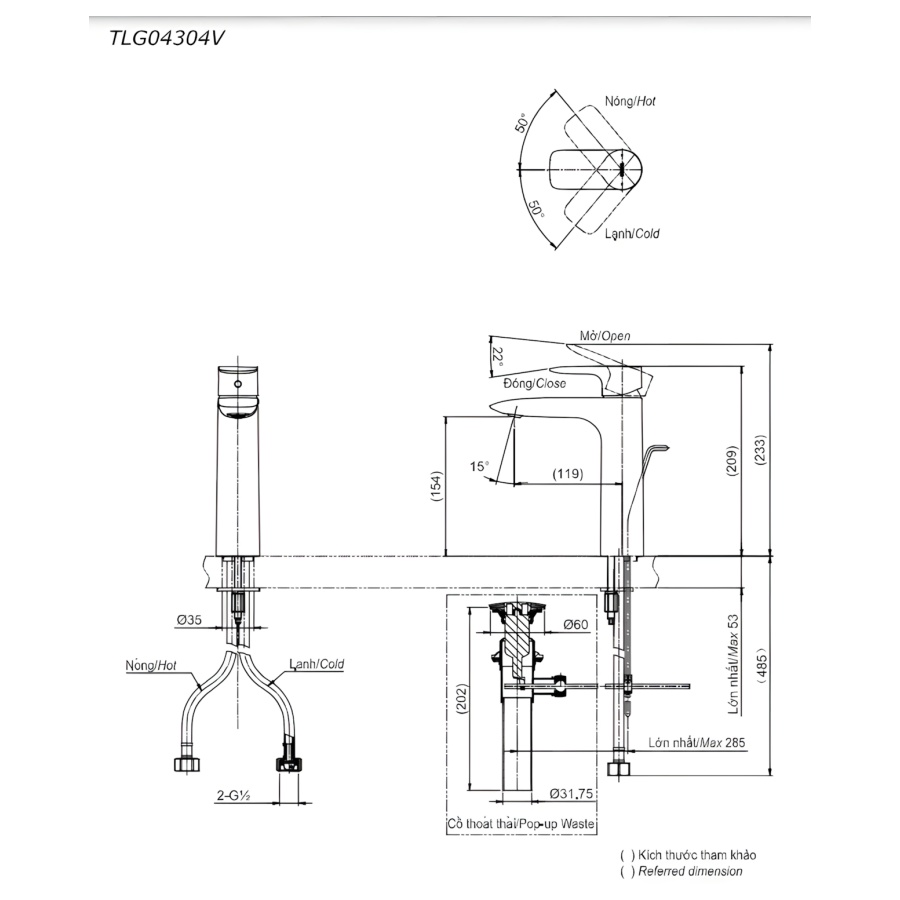 Bản vẽ Vòi Lavabo Nóng Lạnh TOTO TLG04304V Cổ Cao 2 chế độ